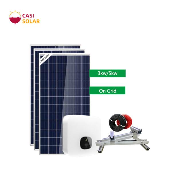 On grid solar power system must be connected to the public power grid. On grid solar power system is mainly composed of solar panels and inverters. The solar panels send out electricity directly through the inverter to convert into alternating current and supply power to household appliances. When solar power fails to meet household appliances, it is replenished automatically from the grid. And this whole process is intelligent control, does not need the human to open or close.
